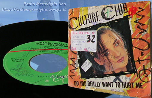 Disco Revival n°32 dal 06/01 al 09/01/1987. Gruppo: *Culture Club* - brano: *Do you realy want to hurt me*. Terzo singolo del gruppo britannico rappresenterà il biglietto d'ingresso della band anche per il mercato americano, raggiungendo il numero 2 della Billboard Hot 100 dei singoli USA, nel 1983. Il singolo diventa numero 1 anche in tanti altri paesi.