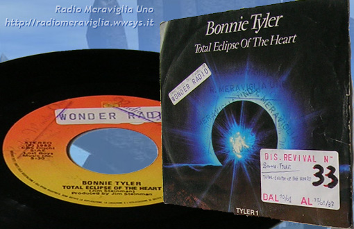 Disco Revival n°33 dal 10/01 al 13/01/1987. Cantante: *Bonnie Tyler* - brano: *Total eclipse of the heart*. Bonnie Tyler, pseudonimo di Gaynor Hopkins. E' nata a Swansea il 08-06-1951, Galles (Regno Unito). Inizia la sua carriera verso la metà degli anni settanta, colpendo il pubblico con la sua voce potente, stridula, rauca e graffiante.