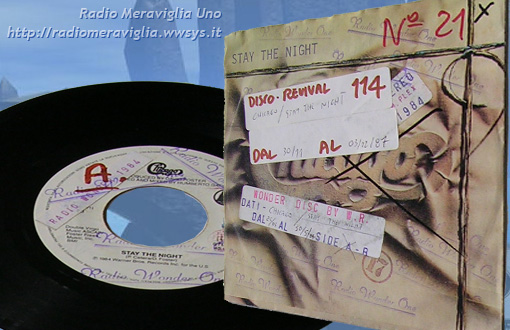 Disco Revival n°114 dal 30/11 al 03/12/1987. Gruppo: *Chicago* - brano: *Stay the night*. Scritta da Peter Cetera e David Foster per il gruppo dei Chicago e inserita nel loro album *Chicago 17* (del 1984), Cetera la voce solista. Questo, il primo singolo estratto dall'album, ha raggiunto il #16 nella US Billboard Hot 100 chart.