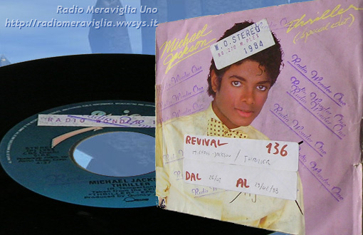 Disco Revival n°136 dal 26/02 al 29/02/1988. Cantante: *Michael Jackson* - brano: *Thriller*. Thriller è il 6° album di Jackson (1982). Con questo disco raggiunse la massima notorietà. Inoltre risulta l'album più venduto nella storia della musica, con 113 milioni di copie dall'anno della sua pubblicazione, e in media vende ancora circa 500.000 copie all'anno.