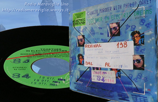 Disco Revival n°198 dal 31/10 al 03/11/1988. Gruppo: *Giorgio Moroder with Philip Oakey* - brano: *Together in Eletric Dreams*. Visto il successo del brano Flashdance, composto nel '83 da Giorgio Moroder con Irene Cara; Un anno dopo, il compositore Philip Oakey contattò nuovamente l’italiano Moroder per comporre la colonna sonora del film Electric Dreams.
