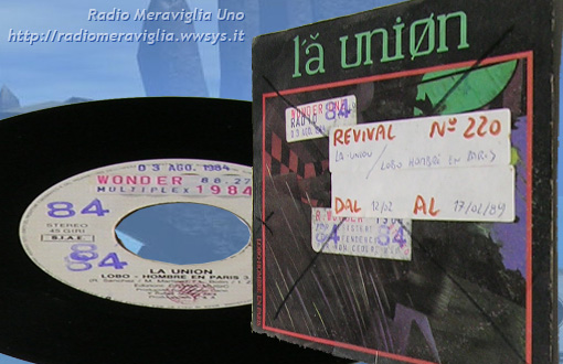 Disco Revival n°220 dal 12/02 al 17/02/1989. Gruppo: *La Union* - brano: *Lobo Hombre en Paris*. L'Unione è un gruppo di Rock-Pop-Blues Spagnolo (Madrid 1982). il brano *Lobo Hombre en Paris* è stato registrato da Rafa Abitbol e Nacho Cano, e lanciato nel marzo del 1984, ha venduto 200.000 copie ed è rimasto 11 settimane al #1 nelle classifiche di vendita.