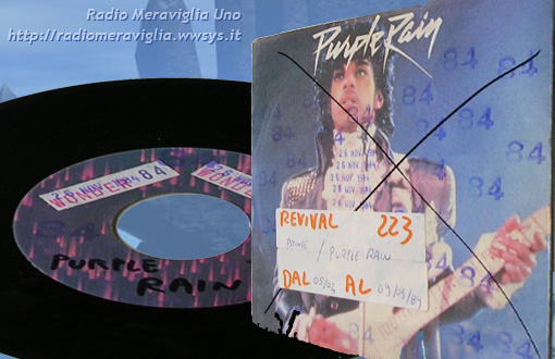 Disco Revival n°223 dal 05/03 al 09/03/1989. Cantante: *Prince* - brano: *Purple Rain*. Nel 1984 ottiene il successo mondiale con Purple Rain (pioggia viola), nella musica come nel cinema. Raggiunge contemporaneamente la prima posizione nelle classifiche dei singoli, album e film. Prima di Prince c'erano riusciti solo i Beatles.