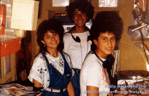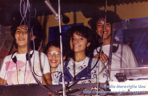 Eccole in una foto di gruppo; partendo da sinistra Carmen, piu a destra un piccolo assistente del momento, poi Daniela e Cristina. In quella che era la prima sede di °Radio Wonder One°, ancora con i fili a penzoloni e la cocorita Sansy (gabbietta sulla sinistra) a tormentare DJ e ascoltatori!