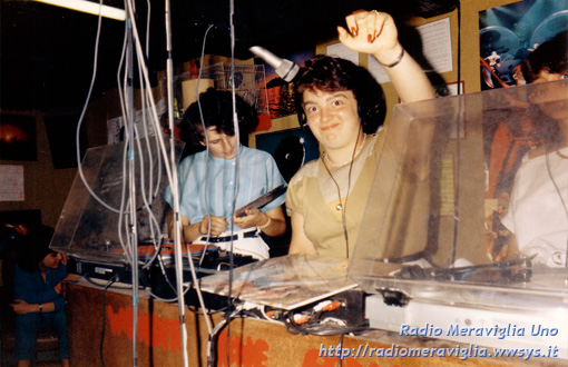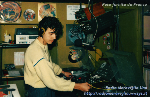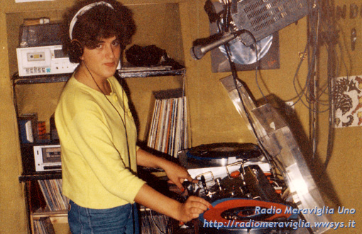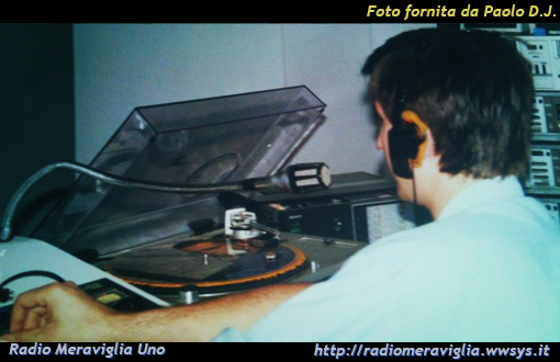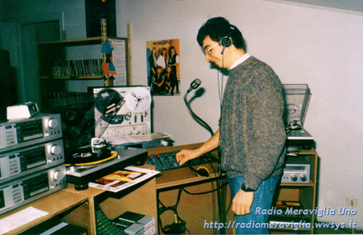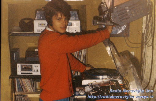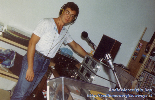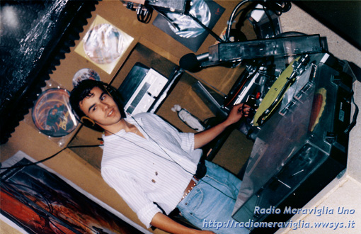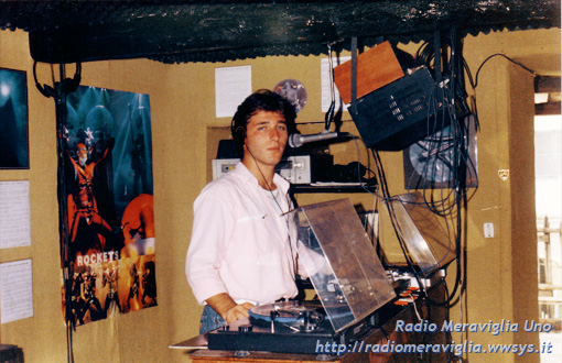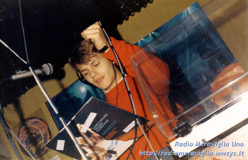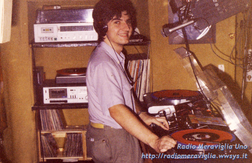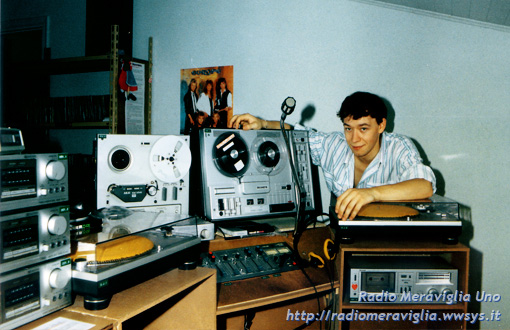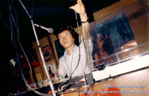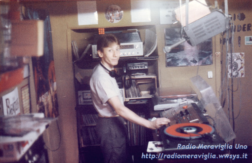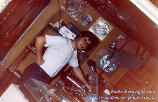 Angelo in diretta radio, in quella che era già una °Radio Meraviglia° un passo avanti. Bancone di lavoro rinnovato e allungato (realizzato da Graziano), nuovi giradischi professionali per DJ °Technics SL1200 Mk2 °, in dotazione solo nelle migliori discoteche, nuovi registratori deck e niente più cavi a penzoloni.